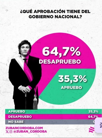 En este sentido, la última encuesta de la consultora Zuban Córdoba señala el aumento de la desaprobación del gobierno y la caída de la imagen positiva de Javier Milei.