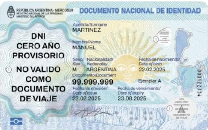 El DNI para los menores de "cero año" provisorio tendrá una validez de 6 meses a partir de la fecha de su emisión.