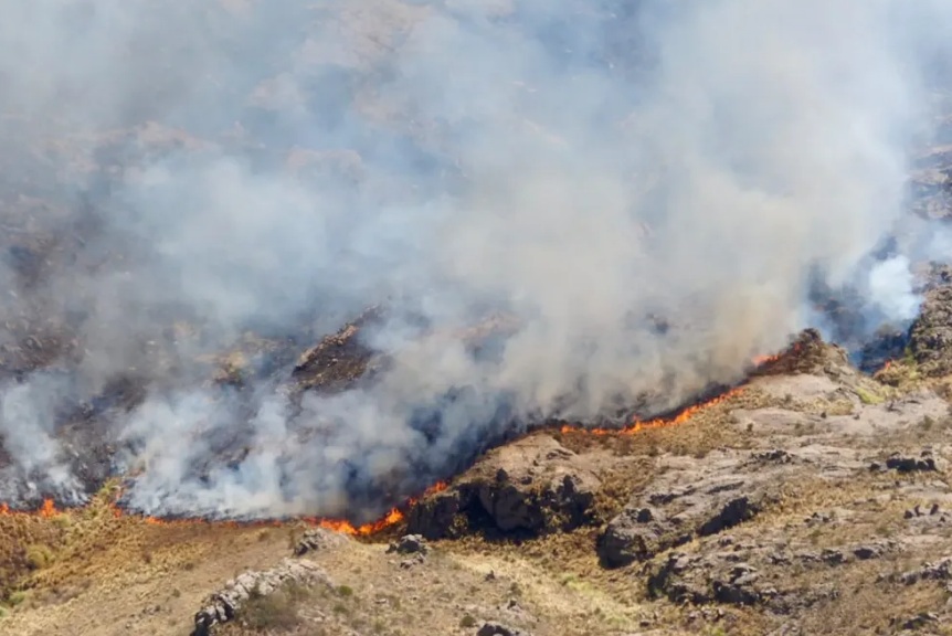 En un reporte emitido este lunes, a las 8, la Secretaría de Gestión de Riesgo Climático del Gobierno de la Provincia informó que se mantiene activo el incendio en la Quebrada del Condorito que inició días atrás, con "muy poca actividad en el sector suroeste"; aunque advirtió que las condiciones climáticas son extremas.