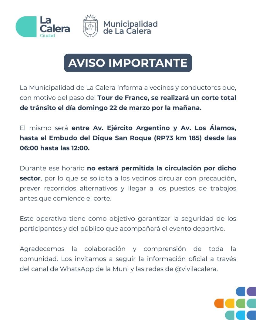 Etapa Argentina del Tour de France: todos los cortes y desvíos en Córdoba y La Calera